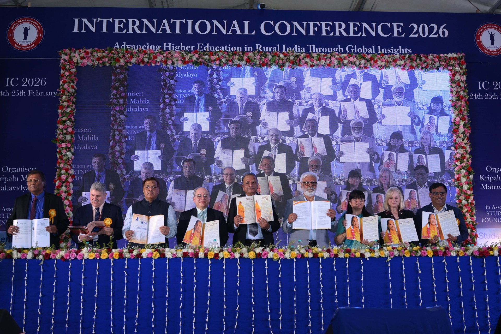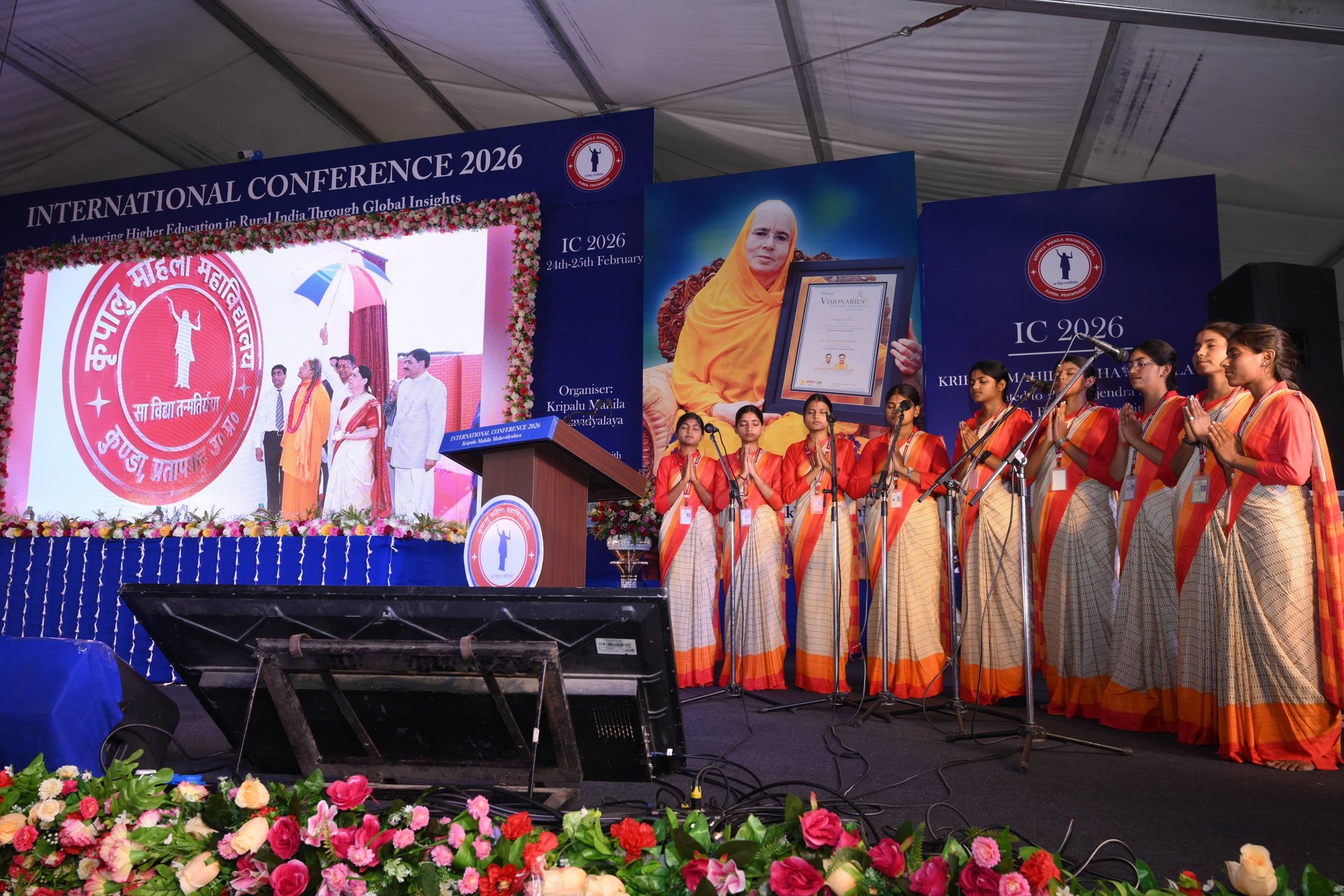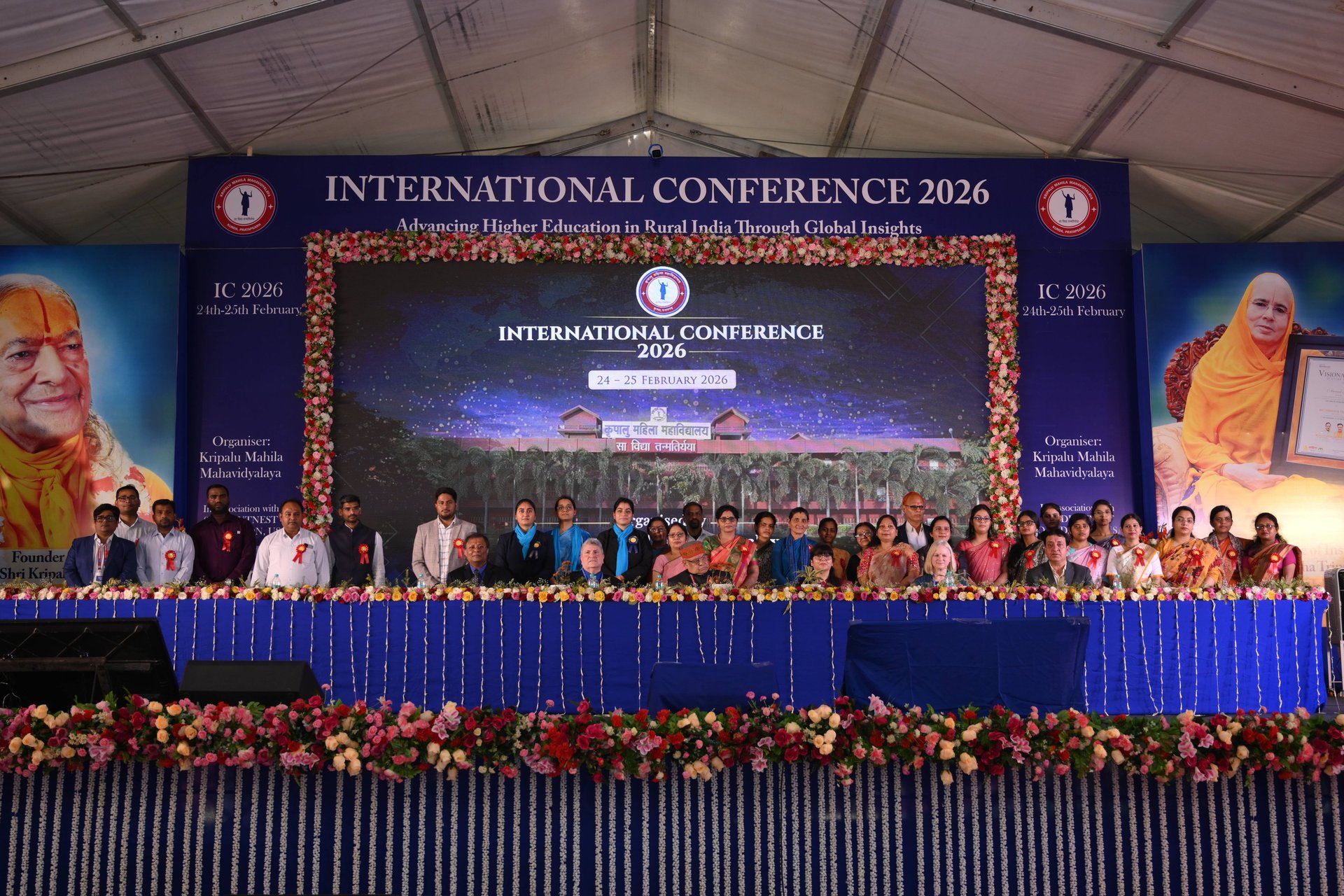 Kripalu Mahila Mahavidyalaya successfully concluded its two-day International Conference – IC2026, drawing over 500 participants, including around 40 distinguished international delegates. The Presidents of Jagadguru Kripalu Parishat and Jagadguru Kripalu Parishat Education, H.H. Sushri Dr. Shyama Tripathi Ji and H.H. Sushri Dr. Krishna Tripathi Ji, inaugurated the conference through the lighting of the lamp (Deepa Prajwalana) in the early hours of 24 February 2026. The theme, “Advancing Higher Education in Rural India through Global Insight,” resonated deeply with the participants and catalysed transformative dialogue. Research submissions were received from across India and countries including the United States, the United Kingdom, Germany, Australia, and New Zealand, reflecting the conference’s global academic relevance and outreach.