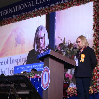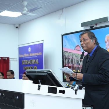 The day concluded with a Memorial Lecture by Ms. Monika Joshi and a plenary talk by Prof. A. R. Tripathi, Professor and Coordinator (MBA-RI), Faculty of Commerce, Banaras Hindu University, highlighting the contributions of Sushri Dr. Vishakha Tripathi Ji, leaving participants energized and intellectually enriched on how international collaboration has transformed lives and made development possible through sustained efforts.